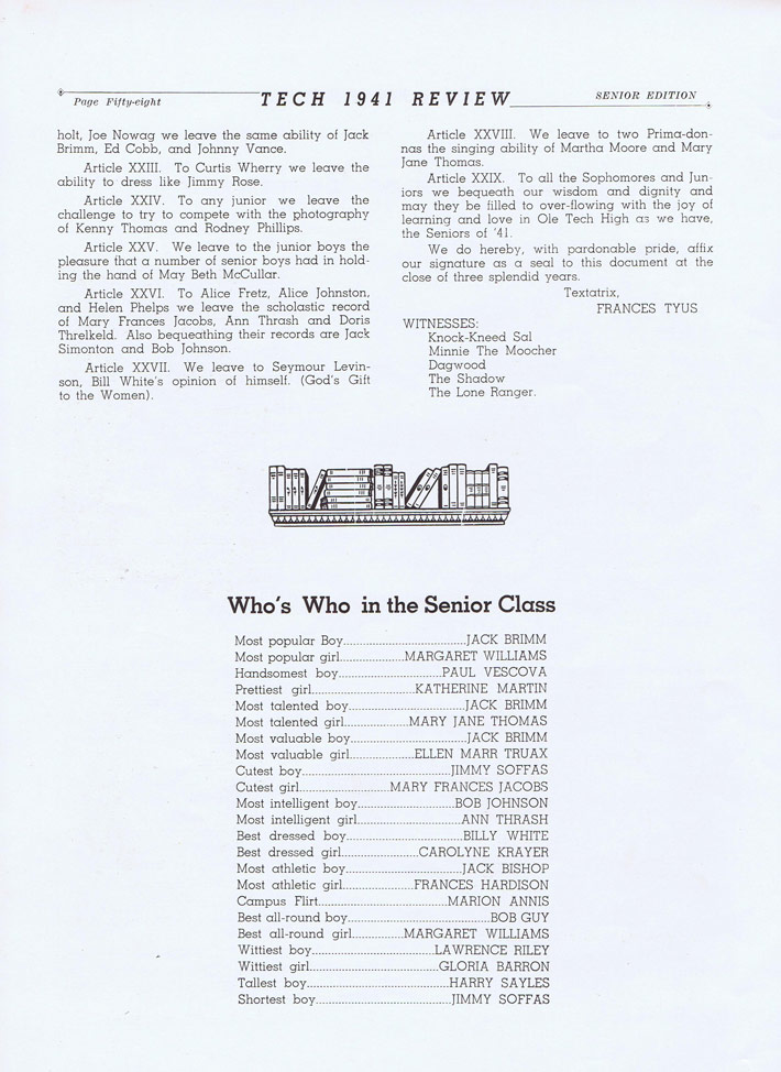 White, Honorary 1969 Techite, for scanning the 1941 yearbook.