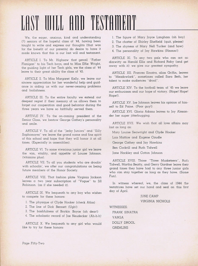Thanks Maureen Thoni White, Honorary 1969 Techite, for scanning the 1944yearbook.